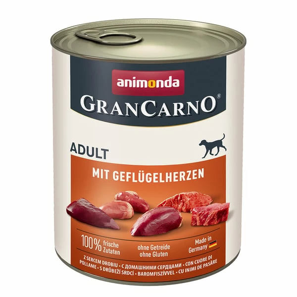 58 % Schwein (Herz, Leber, Lunge, Fleisch), 20 % Geflügelherzen, Natriumchlorid.