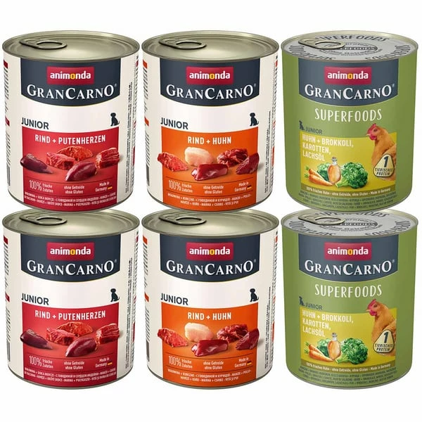 Superfoods Huhn + Brokkoli, Karotten, Lachsöl: Protein 10,5 %, Fettgehalt 5,4 %, Rohfaser 0,5 %, Rohasche 2,5 %, Feuchtigkeit 80 %.