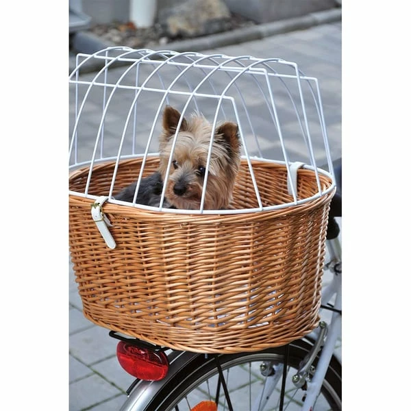 Der Aumüller Fahrrad-Tierkorb ist komplett ausgestattet mit waschbarer Einlage und Sicherheitsdrahtkuppel. Mit dem durchdachten Befestigungssystem am Gepäckträger wird der Fahrradkorb für Tiere schnell und sicher befestigt und kann bis zu 15 kg insgesamt tragen. Der nächsten Radtour mit dem Vierbeiner steht somit nichts mehr im Wege! Der Korb ist in reiner Handarbeit produziert und aus Weide gefertigt.