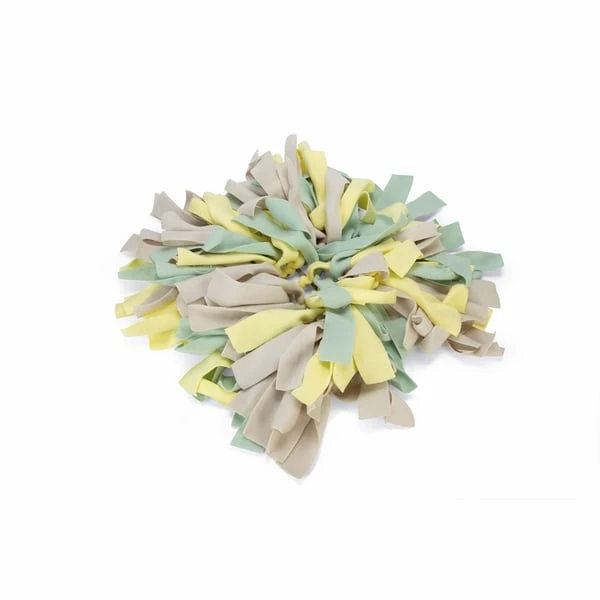 Die Beeztees Puppy Schnüffelmatte Sniffy sorgt für Abwechslung im Welpen-Alltag. In der Matte können für Welpen geeignete Hundekekse und andere Leckereien versteckt werden. Aufgrund der vielen Stoffstreifen muss der Welpe sich anstrengen, um die Snacks zu finden, und ist so lange beschäftigt. Er kann seinen Spürsinn unter Beweis stellen und wird für die erfolgreiche Suche gleich belohnt. Die Matte besteht aus kurzen und langen Stoffstreifen in verschiedenen Farben. Hergestellt aus Joggingstoff ist die Matte für das Näschen des Welpen angenehm weich. Das gemeinsame Spielen mit der Schnüffelmatte stärkt zudem die Bindung zwischen Mensch und Hund. Dabei sollte immer darauf achtgegeben werden, dass der Welpe nicht in die Matte beißt oder darauf herumkaut.