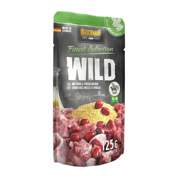 Rinderfleisch, -herz, -lunge, -leber, -kehlkopf, -pansen (63 %); Fleischbrühe vom Rind (28 %); Spätzle (4 %); Zucchini (4 %); Distelöl (0,5 %); Mineralstoffe (0,5 %)