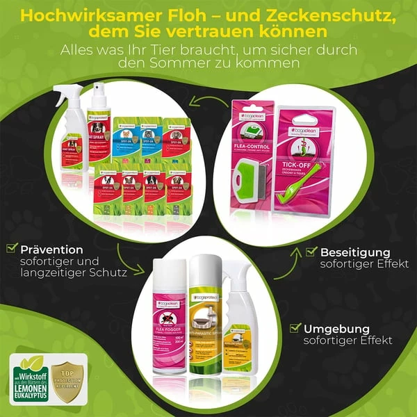 - Vorbeugend, wehrt Zecken und Flöhe ab ohne sie zu töten