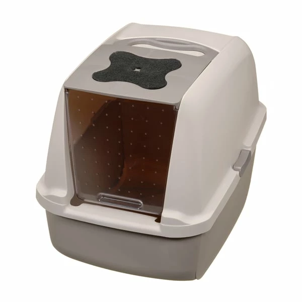 Die Catit Katzentoilette mit Abdeckung kontrolliert durch die geschlossene Konstruktion Gerüche und verringert Staub & Verschmutzungen. Die Klapptür sorgt für einen leichten Zugang zur Reinigung.