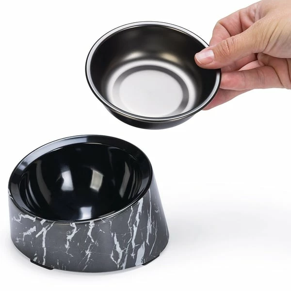 Der Vita Katzennapf enthĂ€lt eine herausnehmbare EdelstahlschĂŒssel mit matter OberflĂ€che. Diese Schale ist nicht nur hygienisch und leicht zu reinigen, sondern verhindert auch, dass EssensgerĂŒche vom Material aufgenommen werden. Du kannst die EdelstahlschĂŒssel ganz einfach in der SpĂŒlmaschine reinigen, um Zeit und Aufwand zu sparen.