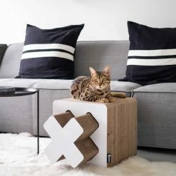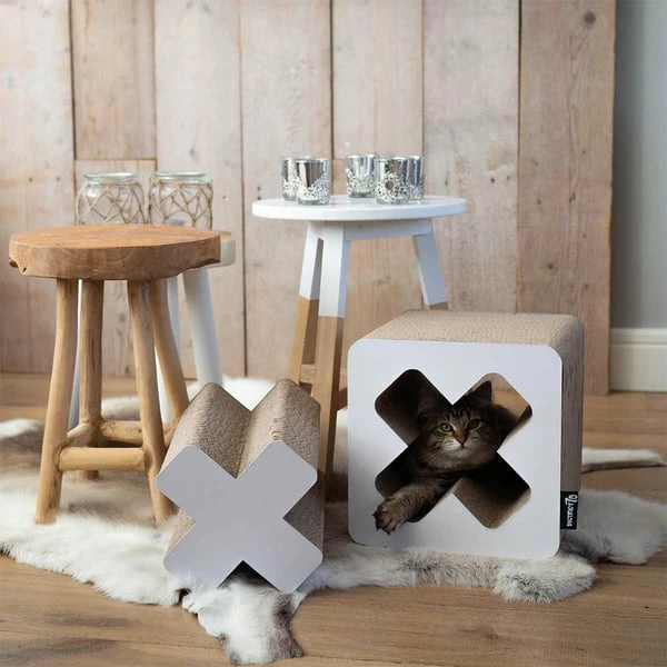 Mit ihrer Stabilität ist Wellpappe ein hervorragend geeignetes Herstellungsmaterial für Kratzmöbel. Hier kann nicht nur gespielt und gekratzt, sondern auch ein Nickerchen gemacht werden. Aus recycelten Materialien hergestellt und damit besonders nachhaltig. Mit dem Kratzmöbel von District70 lässt du es deiner Katze gut gehen.