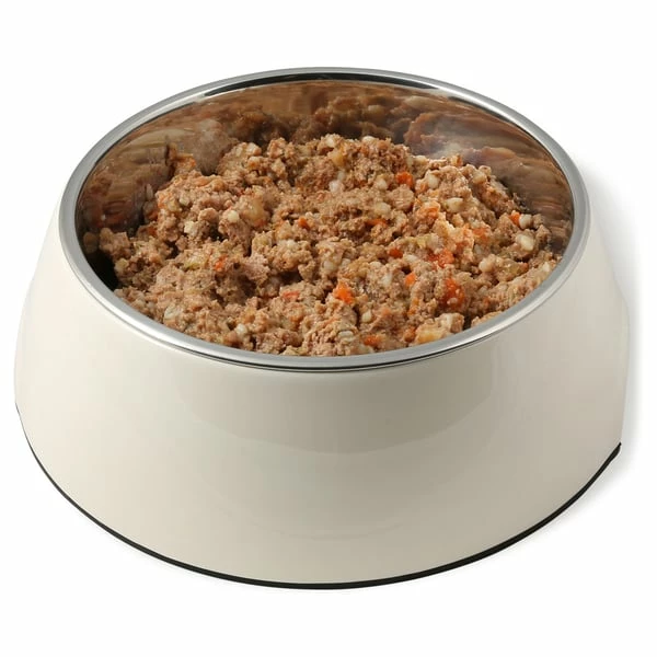 Bio-Hühnerfleisch 61 %, Bio-Karotten 10 %, Bio-Sellerie 10 %, Bio-Brokkoli 8 %, Bio-Buchweizenkerne 4 %, Mineralstoffe, Seealgen, Bio-Basilikum 0,3 %, Bio-Sonnenblumenöl.