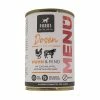 Wild* 50 % (bestehend aus Herz, Muskelfleisch, Leber, und Lunge), Trinkwasser 25,79 %, Hering 15 %, Hirse 4 %, Tomate 4 %, Mineralstoffe 1 %, Borretschöl 0,2 %, Spirulina 0,01 %