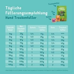 Lachs: Frischer Lachs 40%, Kartoffeln, Erbsen, Erbsenprotein, Leinsaat, Fischöl, Gemüsesoße, Mineralstoffe, Mannan-Oligosaccharide (MOS), Fructo-Oligosaccharide (FOS), Rote Bete 0,04%, Äpfel 0,04%, Mango 0,04%, Avocado 0,04%, Kokosnuss 0,04%, Spinat 0,04%, schwarze Johannisbeere 0,04%, Ringelblumenblüten, Nesseln, Brombeerblätter, Fenchel, Kümmel, Kamille, Melisse.