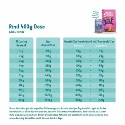 Rind 60%, Karotte 2%, Brokkoli (getrocknet) 0,5%, Mineralstoffe, Mannan-Oligosaccharide (MOS), Leinsamenöl, Fructo-Oligosaccharide (FOS), Rote Bete (sĂ©chĂ©e) 0,13%, Birnen (getrocknet) 0,08%, getrockneter Fenchel 0,01%, getrockneter KĂŒmmel 0,01%, getrocknete Schafgarbe 0,01%, getrocknete BrombeerblĂ€tter 0,01%, getrocknete Mistel 0,01%, getrocknete KamillenblĂŒten 0,01%, getrocknete Enzianwurzel 0,01%, getrocknetes TausendgĂŒldenkraut 0,01%