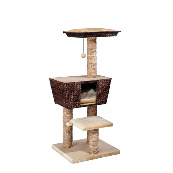 Mit dem PlĂŒsch ist der Kratzbaum auch besonders kuschelig. Mit dem Sisal ist der Kratzbaum bestens fĂŒr die Krallen deiner Katze gewappnet. Der Kratzbaum besteht aus Echtholz – ein nachwachsender Rohstoff. Eine besonders schöne und natĂŒrliche Optik bekommt der Kratzbaum mit der verwendeten Wasserhyazinthe. Hier kann nicht nur gespielt und gekratzt, sondern auch ein Nickerchen gemacht werden. Nicht nur ein toller Ort um die Krallen auf Vordermann zu bringen, sondern auch zum Klettern und Spielen. Der Kratzbaum ist mit einer Höhle zum RĂŒckzug, mehreren Etagen als Aussichtsposten, Extras fĂŒr viel SpielspaĂ, einem herausnehmbaren Kissen ausgestattet. Schenke deiner Katze eine Portion KratzspaĂ – mit dem Kratzbaum von Europet Bernina!