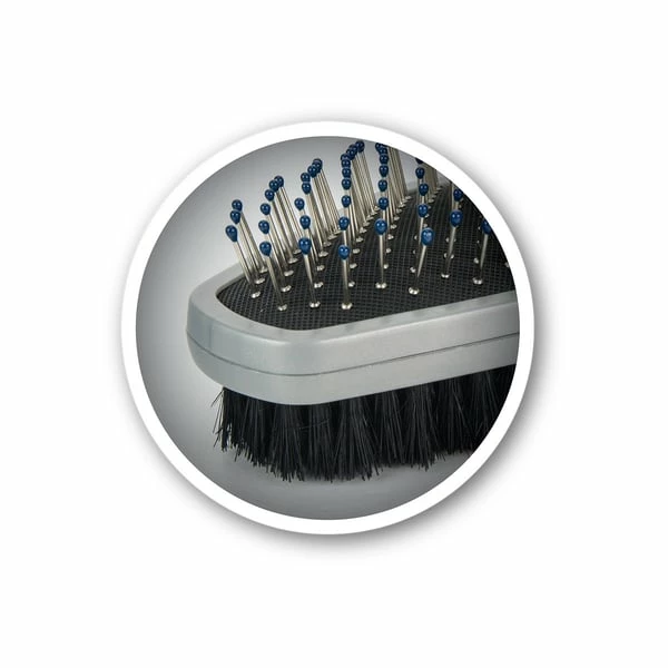 - Seite mit Schweineborsten (weiche Borsten), die dem Deckhaar einen natürlichen, geschmeidigen Glanz verleihen.