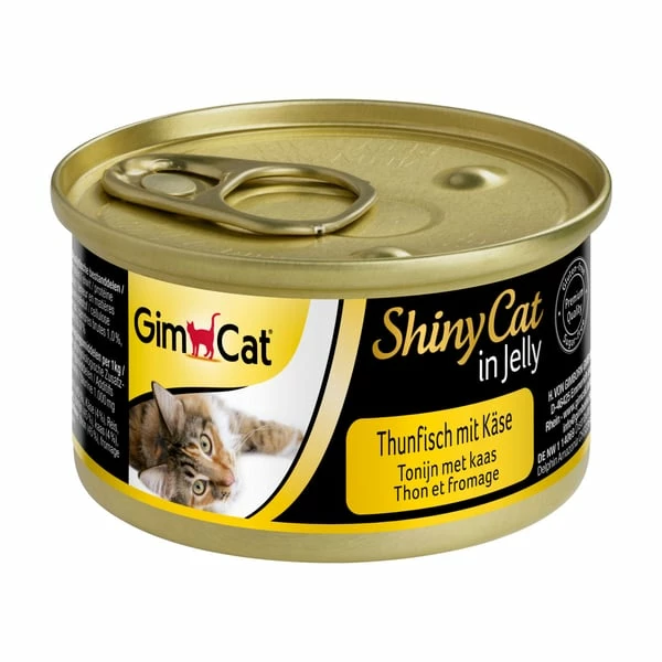 Entdecke leckeres Nassfutter für deine Katze. Mit GimCat ShinyCat in Jelly Thunfisch mit Käse kommt ein qualitativ hochwertiges Futter in den Napf. Für einen guten Appettit sorgt wohlschmeckender Fisch. Das Futter ist für Katzen aller Größen und Katzen aller Lebensphasen zu empfehlen. Ausgewachsene Katzen können Laktose von Natur aus nicht gut verdauen, weshalb GimCat ShinyCat in Jelly Thunfisch mit Käse laktosefrei ist. Zudem wird bewusst auf die Zugabe von Zucker, Farbstoffen und künstlichen Geschmacksverstärkern verzichtet.