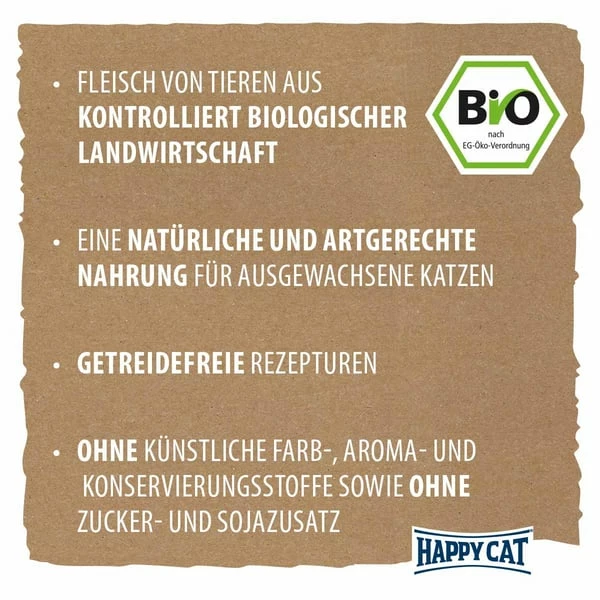Fleisch- und tierische Nebenerzeugnisse* (72 % Huhn), Mineralstoffe, Ăle und Fette* (0,2 % Sonnenblumenöl); *) Rohwaren aus kontrolliert biologischer Landwirtschaft