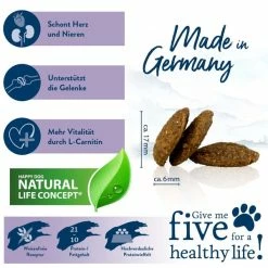 Rohprotein 21,0 %, Rohfett 10,0 %, Rohfaser 2,5 %, Rohasche 5,5 %, Calcium 1,0 %, Phosphor 0,75 %, Natrium 0,35 %, Magnesium 0,08 %, Kalium 0,5 %, Omega-6-FettsÀuren 3,0 %, Omega-3-FettsÀuren 0,3%