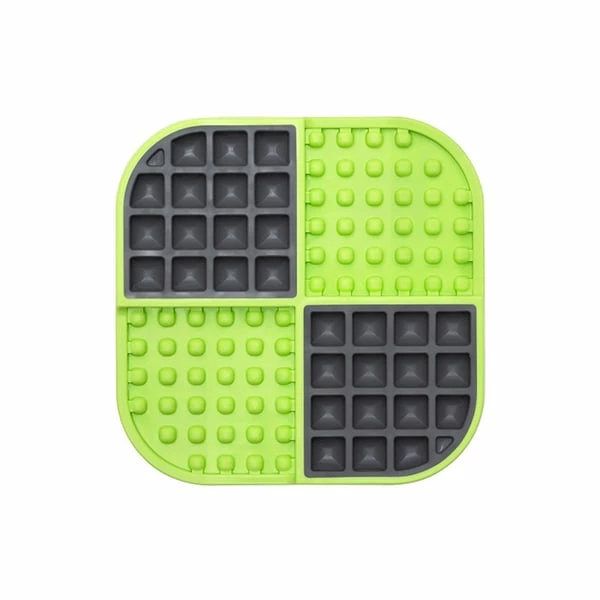 Die LickiMat Slomo kann als Anti-Schlingnapf fĂŒr kleine Hunde oder fĂŒr Snacks fĂŒr gröĂere Hunde eingesetzt werden. Mit der Leckmatte kannst flĂŒssige, nasse und trockene Speisen zusammen servieren und das ohne Sauerei und Unordnung.