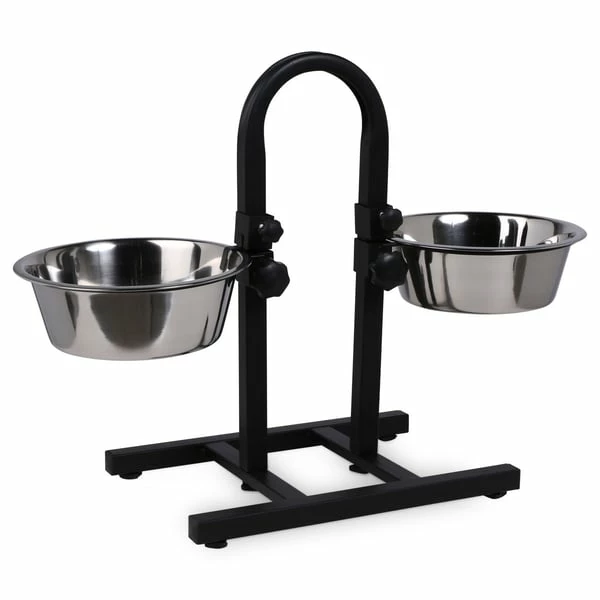 Die Kerbl Futterbar Deluxe ist ein besonderes Highlight. Sie bietet Ihrem Liebling die Wahl zwischen zwei Näpfen, die zusätzlich höhenverstellbar sind. Diese können durch die Napffixierung befestigt werden, die Kunststofffüße sind zusätzlich höhenverstellbar sind. So macht Ihrem Hund jede Mahlzeit doppelt Spaß.
