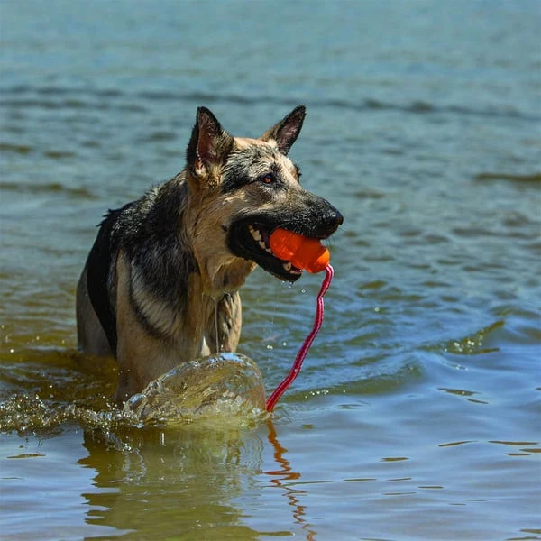 Der KONG Aqua ist ein Apportierspielzeug, das auf dem Wasser schwimmt. Ob hüpfend an Land oder schwimmend im Wasser sorgt er für jede Menge Spielspaß und Bewegung. Dank des Schaumstoffkerns treibt der KONG Aqua im Wasser und Ihr Hund kann ihm nachschwimmen und zu fassen versuchen.