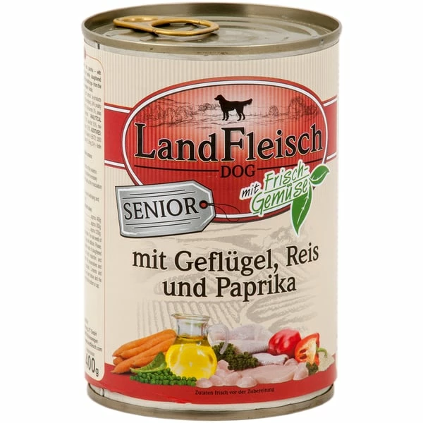 60 % Fleisch und tierische Nebenerzeugnisse (davon 35% von der Ente, 25% vom Huhn), 24 % Geflügelfleischbrühe, 10 % Gemüse (Paprika 5%, bio-Karotten 3%, Erbsen 2%), 5% Reis, 1% Mineralstoffe