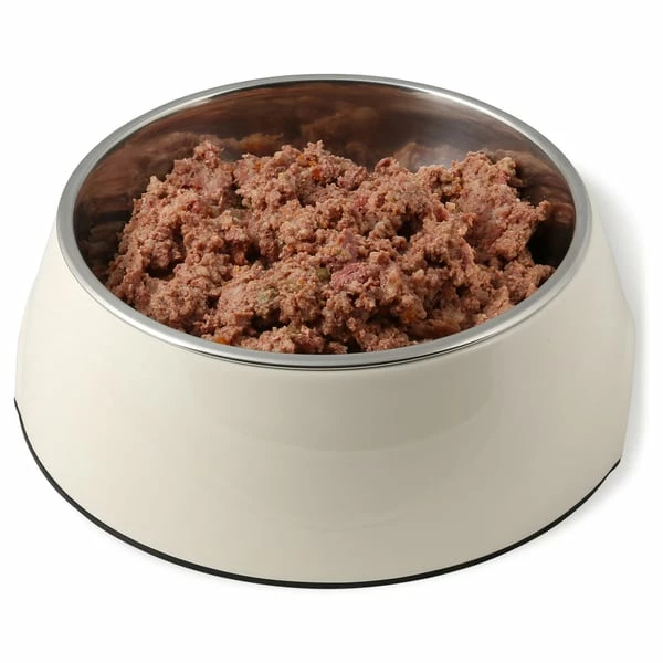 67 % Fleisch und tierische Nebenerzeugnisse (davon 30 % Pansen), 21 % Rindfleischbrühe, 5 % Reis, 5 % Gemüse (bio-Karotten, Erbsen), Mineralstoffe, Pflanzenöle (Omega 3 + 6 FS), Inulin.