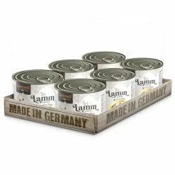56% Lammfleisch, -leber, -herz, -lunge, -niere; 28,8% Fleischbrühe; 14% Hühnerfilet; 0,5% Mineralstoffe; 0,5% Eierschalen, getrocknet; 0,2% Lachsöl