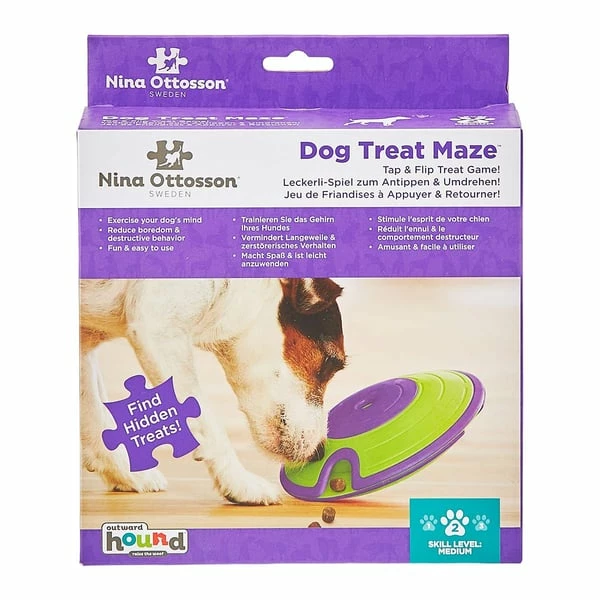 Das Treat Maze von Nina Ottosson by Outward Hound ist ein Spiel mit Level 2, das sich perfekt fĂŒr Haustierbesitzer eignet, die nach einem interessanten Spielzeug zur SelbstbeschĂ€ftigung fĂŒr ihren Liebling suchen, um zerstörerisches Verhalten und Langeweile zu reduzieren. Ideal fĂŒr Hunde, die Spiele mit Level 1 gemeistert haben und bereit fĂŒr eine zusĂ€tzliche Herausforderung sind. Dieses farbenfrohe Hunde-Denkspielzeug ist einfach mit Leckerlis zu befĂŒllen und kann geschĂŒttelt werden, um den Duft freizusetzen, falls dein Hund ihn noch nicht bemerkt hat. Der Treat Maze hat keine zusĂ€tzlichen Teile, sodass keine Unordnung entsteht und das Spielzeug einfach mit Seife und SpĂŒlmittel zu reinigen ist.