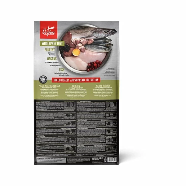 Frisches Hühnerfleisch (13%), frische ganze Eier (7%), frisches Truthahnfleisch (7%), frischer ganzer Hering (7%), frische Hühnerleber (6%), frische ganze Flunder (4%), frische Truthahnleber (4%), frische Hühnerhälse (4%), frische Hühnerherzen (4%), frische Truthahnherzen (4%), Hühnerfleisch (getrocknet 4%), Truthahn (getrocknet 4%), ganze Makrelen (getrocknet 4%), ganze Sardinen (getrocknet 4%), ganzer Hering (getrocknet 4%), rote Linsen, grüne Linsen, grüne Erbsen, Linsenfasern, Kichererbsen, gelbe Erbsen, Wachtelbohnen, Hühnerknorpel (1%), ganze weiße Bohnen, Heringsöl (1%), Hühnerfett (1%), Truthahnknorpel (1%), Hühnerleber (gefriergetrocknet), Truthahnleber (gefriergetrocknet), frischer ganzer Kürbis, frischer ganzer Butternußkürbis, frische ganze Zucchini, frische ganze Pastinaken, frische Möhren, frische ganze Äpfel, frische ganze Birnen, frischer Grünkohl, frischer Spinat, frische Rübenblätter, frischer Rübstiel, brauner Seetang, ganze Cranberries, ganze Heidelbeeren, ganze “Saskatoon” Beeren, Chicoréewurzeln, Kurkumawurzeln, Mariendistel, Klettenwurzeln, Lavendel, Eibischwurzeln, Hagebutten.