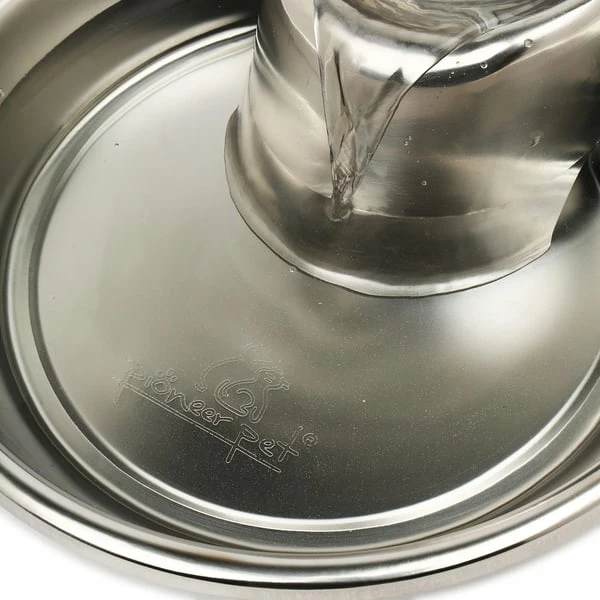 Der Edelstahl-Trinkbrunnen Big Max Style von Pioneer Pet ist besonders für große Hunde geeignet, da er eine sehr ausladende Trinkoberfläche bietet.