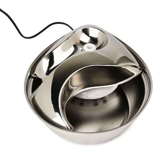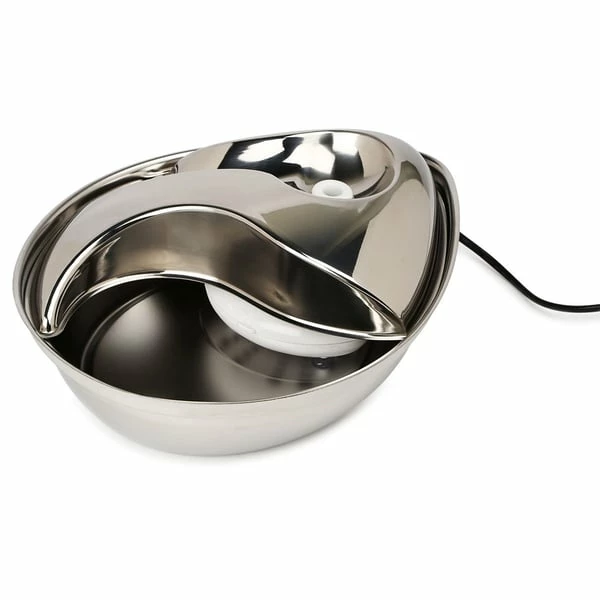 Der Edelstahl Trinkbrunnen Rain Drop Style 2,8 l wird produziert von Pioneer Pet und ist gleichermaßen geeignet für Katzen und Hunde. Er besteht aus hochwertigem Edelstahl, der sich einfach, bequem und hygienisch rein säubern lässt – auch in der Spülmschine.