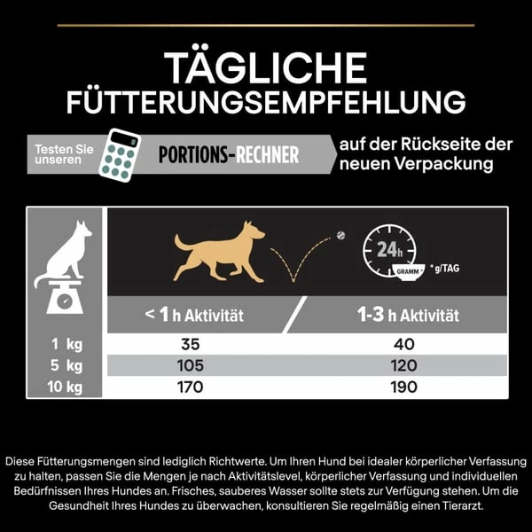 Protein: 30,0%, Fettgehalt: 17,0%, Rohasche: 8,0%, Rohfaser: 3,0%.