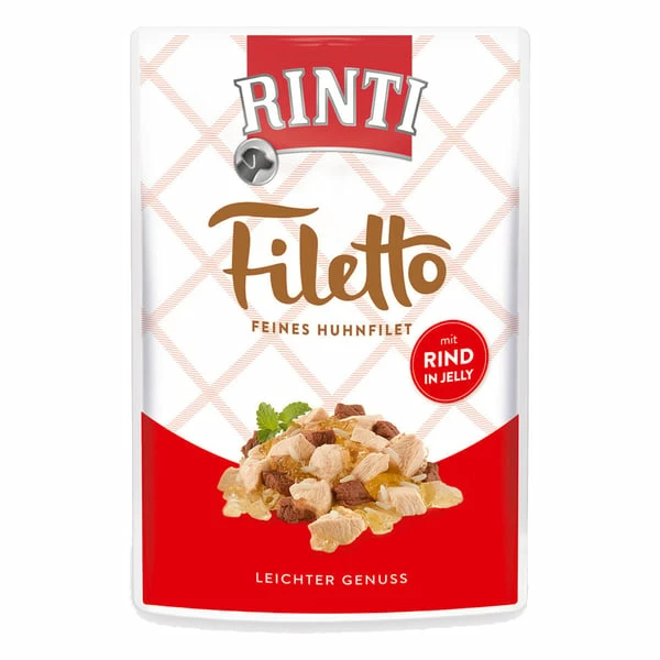 Für eine ausgewogene Mahlzeit deines Hundes kannst du mit diesem proteinreichen Nassfutter sorgen. Mit Rinti Filetto Huhn & Rind in Jelly hast du die richtige Wahl für ein qualitativ hochwertiges Futter getroffen. Das Futter ist für Hunde aller Größen geeignet sowie speziell auf die Bedürfnisse von ausgewachsenen Hunden angepasst. Ein erhöhter Eiweiß- und Energiebedarf wird von aktiven Hunden benötigt. Dieser kann durch dieses proteinreiche Hundefutter gedeckt werden. Positiv auf die Verdauung können sich die speziellen Zutaten auswirken. Die beigefügten Vitamine können mehr Vitalität verleihen und für mehr Kraft im Alltag sorgen. Aufgrund der hohen Akzeptanz dieses Nassfutters wird es sicher auch dein Vierbeiner mögen.