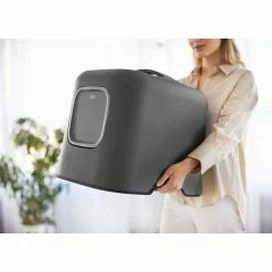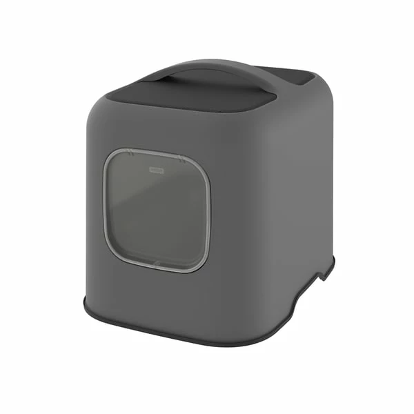 Die designorientierte Katzentoilette in zeitloser Gestalt. Der Kohlefilter im Deckel fĂ€ngt unangenehme GerĂŒche auf und verhindert, dass diese nach Aussen gelangen. Durch einen Magneten lĂ€sst sich die TĂŒr schnell schliessen und bleibt in geschlossener Position – eine weitere Eigenschaft, um schlechte GerĂŒche in der Katzentoilette zu bewahren. Eine Schaufel fĂŒr die Reinigung der Katzentoilette ist inbegriffen. Der obere Teil der Katzentoilette lĂ€sst sich ganz einfach mit einer Hand entnehmen, was sie auch dank des ergonomischen Griffes sehr benutzerfreundlich macht. Das Produkt besteht aus rezykliertem Kunststoff.