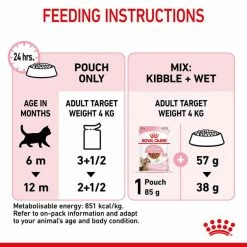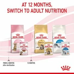 ROYAL CANIN® Sterilised Kitten in Soße wurde speziell für die Ernährungsbedürfnisse von kastrierten Kätzchen in der „Entwöhnungsphase“ ihres Wachstums entwickelt. Diese Rezeptur ist für 6 bis 12 Monate alte kastrierte Kätzchen geeignet, da sie zu dem Zeitpunkt eine bedeutende Phase durchlaufen, in der sich der Körper und das Verhalten verändert. Diese maßgeschneiderte Nahrung bietet feuchte Stückchen in Soße, die eine optimale Größe, Textur und einen optimalen Geschmack für heranwachsende Kätzchen aufweisen.
