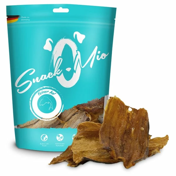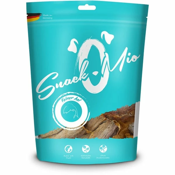 SnackOmio feiner Aal fĂŒr einen natĂŒrlichen und garantierten KauspaĂ. SnackOmio ist ein natĂŒrlicher Snack, schonend luftgetrocknet, Getreidefrei, Zuckerfrei und ohne chemische ZusĂ€tze. Regionale Zutaten fĂŒr beste QualitĂ€t und VertrĂ€glichkeit. Durch die wiederverschlieĂbare Verpackung bleibt das Produkt lange frisch. Nach dem Anbruch bitte kĂŒhl und trocken lagern.