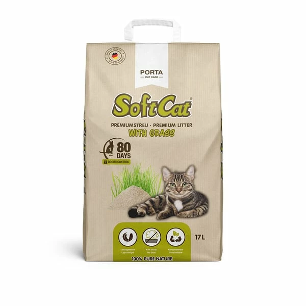 100% natürliche Katzenstreu aus schnell nachwachsenden Gräsern, eine naturbelassene Streu mit besonderen Klumpeigenschaften, ultraleicht und extrem saugfähig.