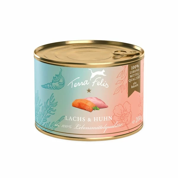 - leckeres Katzen-Nassfutter mit Lachs und Huhn