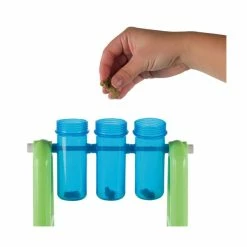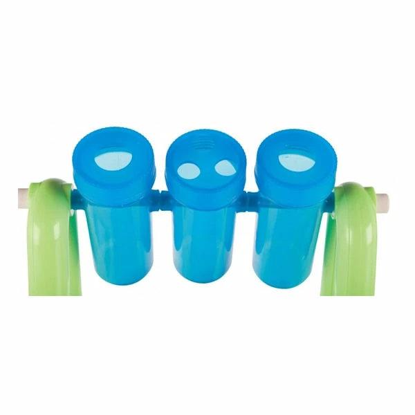 - besteht aus lackiertem Kunststoff und einem Sockel mit rutschfesten GummifĂŒĂen. Am StĂ€nder sind 3 Drehelemente mit je 2 Deckeln befestigt. ⊠bietet durch unterschiedliche Deckelöffnungen 2 Schwierigkeitsgrade.