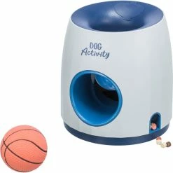 Das Trixie Dog Activity Strategie-Spiel Ball & Treat ist ein Intelligenzspielzeug mit einem mechanischen Leckerlispender. Die Leckerchen werden oben eingefüllt und kommen unten an zwei Seiten raus, wenn der Hund den Ball oben in das Spielzeug hineinlegt. Die Leckerchen dürfen max. ø 15 mm groß sein. Es wird inklusive Trainingsanleitung geliefert und entspricht dem Schwierigkeitsgrad Level 3. Somit ist es für Profis geeignet.