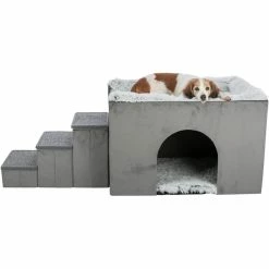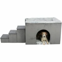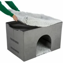 Die Höhle Harvey mit Treppe von Trixie ist der perfekte Hundeschlafplatz für deinen Liebling! Dank der gepolsterten Liegeplatte und des abnehmbaren Betts (70 x 50 cm) kann dein Vierbeiner es sich so richtig gemütlich machen. Aber die Höhle Harvey kann noch mehr: Durch die aufklappbare Treppe erhältst du zusätzlichen Stauraum und kannst Spielzeug oder Leckerlis darin aufbewahren. Besonders praktisch: Das Hundebett ist zusammenfaltbar und platzsparend zu verstauen und kann einfach mit einem feuchten Tuch abgewischt werden.