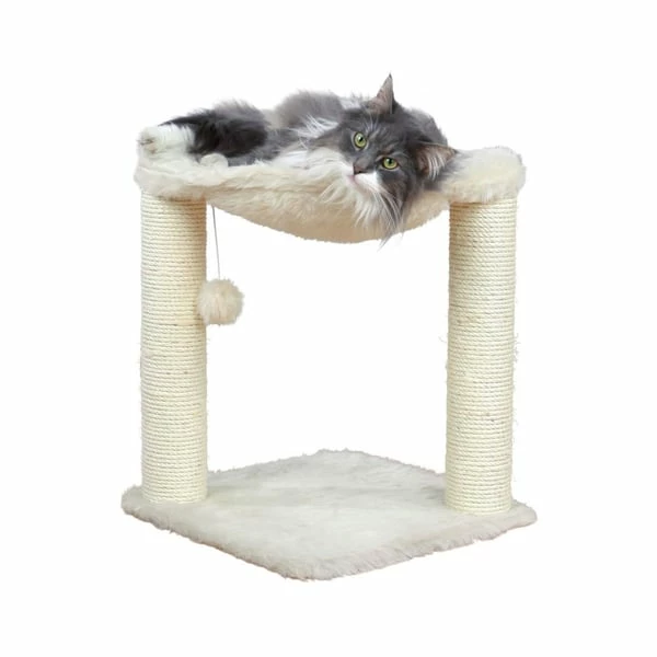 Mit dem PlĂŒsch ist der Kratzbaum auch besonders kuschelig. Mit dem widerstandsfĂ€higen Sisal trotzt der Kratzbaum auch ausdauerndem Kratzen. Hier kann nicht nur gespielt und gekratzt, sondern auch ein Nickerchen gemacht werden. Nicht nur ein toller Ort um die Krallen auf Vordermann zu bringen, sondern auch zum Klettern und Spielen. Der Kratzbaum wurde auf Schadstoffe geprĂŒft und ist damit garantiert fĂŒr Mensch und Tier vertrĂ€glich. Der Kratzbaum ist mit Extras fĂŒr viel SpielspaĂ, einer HĂ€ngematte fĂŒr besonders entspannende Nickerchen ausgestattet. Schenke deiner Katze eine Portion KratzspaĂ – mit dem Kratzbaum von Trixie!