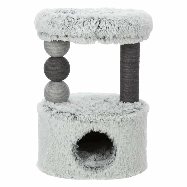 Der PlĂŒschanteil des Kratzbaums ist samtig weich. Auch fĂŒr besonders ausgiebiges KrallenschĂ€rfen ist der Kratzbaum mit der robusten Jute klasse geeignet. Er Bietet auch eine RĂŒckzugsmöglichkeit fĂŒr das Wohlbefinden sensibler Katzen. Nicht nur ein toller Ort um die Krallen auf Vordermann zu bringen, sondern auch zum Klettern und Spielen. Mit einer Höhle zum RĂŒckzug, einem herausnehmbaren Kissen ist der Kratzbaum bestens ausgestattet. Mit dem Kratzbaum von Trixie lĂ€sst du es deiner Katze gut gehen.