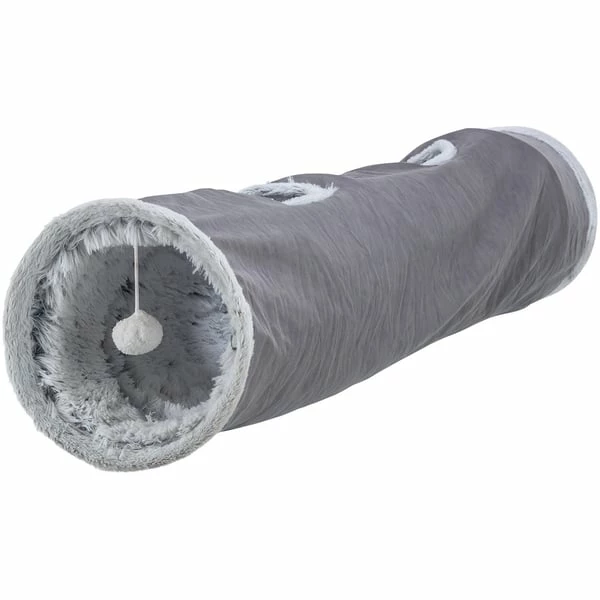Hast du schon mal deinen vierbeinigen Freund dabei beobachtet, wie er sich unter Möbeln oder in Kisten versteckt? Dann wird er den Spieltunnel Harvey von TRIXIE lieben! Mit seinen vier Eingängen und den Spielzeugen am Band kann deine Fellnase hier stundenlang toben und spielen. Das Highlight: Der Tunnel ist komplett mit kuscheligem Plüsch ausgestattet – so wird der Tunnel garantiert zum neuen Lieblingsplatz deines Kätzchens. Der Spieltunnel Harvey von TRIXIE besteht aus robustem Polyester und hat eine Größe von ø 27 × 116 cm.
