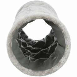 Spieltunnel in grau aus Plüsch regt dank der eingenähten Raschelfolie besonders den Spieltrieb an. Größe: ø 22 × 60cm.