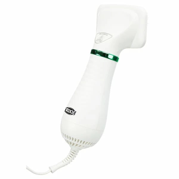 Die Warmluftbürste von Trixie ermöglicht durch zwei Wärmestufen das effektive Trocknes des Fells. Durch den laufruhigen und geräuscharmen Motor kann die Warmluftbürste auch bei sensiblen Tieren eingesetzt werden. Die Bürste ist mit Kunststoffborsten und Noppen ausgestattet.