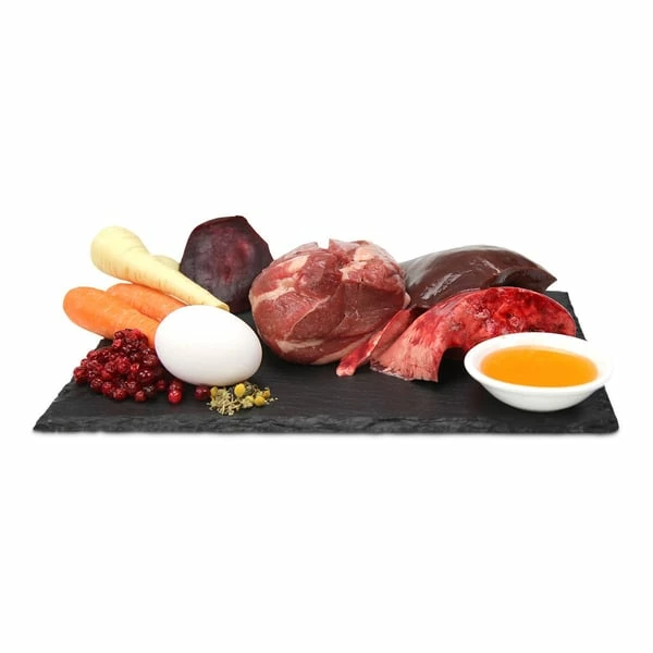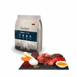 Frisches Lammfleisch, -leber, -lunge 25 %; Geflügelprotein (getrocknet) 17,5 %; Erbsenmehl; Kartoffelstärke; Amaranth; Lammprotein (getrocknet) 7,5 %; Geflügelfett; Fischmehl von Meeresfischen 5 %; Bohnenmehl; Meeresfische (sprühgetrocknet) 4 %; Geflügelleber (hydrolysiert); Ei (getrocknet); Bierhefe (getrocknet); Johannisbrotschrot (getrocknet); Leinsaat; Lachsöl 1 %; Gemüse (getrocknet: Pastinake, Karotte, Rote Beete) 0,5 %; Kaliumchlorid; Cranberry 0,2 %; Kräuter (getrocknet: Brennnesselblätter; Brombeerblätter; Tausendgüldenkraut; Kamille; Schafgarbenkraut) 0,1 %; Chicoree Inulin.