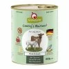 Wild 67 %, Brühe, Kartoffeln 2 %, Mineralstoffe, Möhren, Erbsen, Topinambur, Fruchtmischung (Brombeeren, Himbeeren, Holunderbeeren, Schwarze Johannisbeeren, Heidelbeeren, Cranberries), Leinsamen, Yucca-Extrakt, Spinat, Fenchel, Kräutermischung (Anissamen, Bockshornklee, Pfefferminze, Petersilie, Oregano, Thymian, Brennnessel, Löwenzahn, Weißdorn, Ginseng), Seegras, Spirulina, Grünlippmuschel.