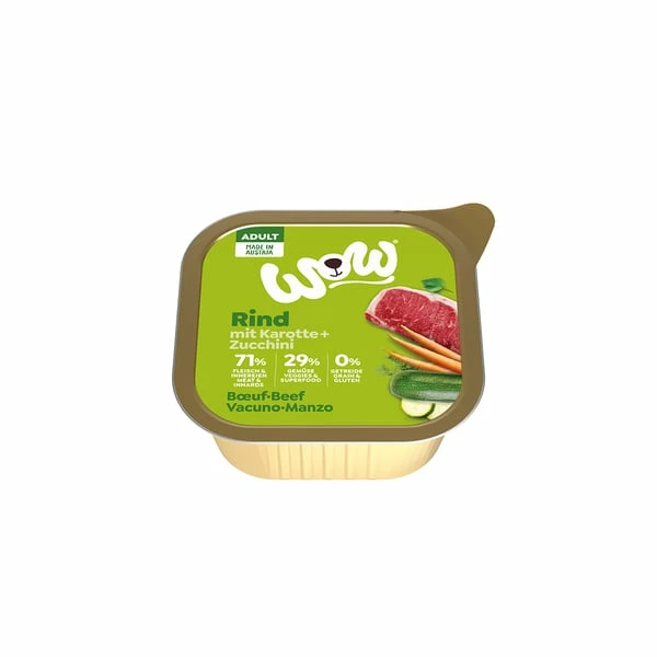 Rind: 71 % Fleisch & Innereien (51,5 % vom Rind insgesamt (31,5 % Rinderlunge, 8 % Rinderniere, 6 % Rinderherz, 6 % Rinderleber), 19,5 % HĂŒhnerfleisch), 2 % Karotten, Mineralstoffe, 0,5 % Zucchini, Leinöl, Eierschalenpulver, 0,1 % Seealgen, BrennnesselblĂ€tter, LöwenzahnblĂ€tter