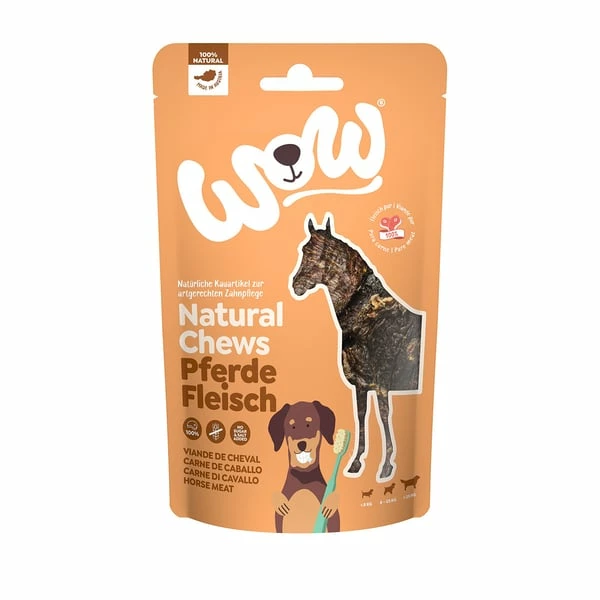 Natural Chews: Natürliche Kauartikel zur artgerechten Zahnpflege. Das Pferdefleisch wird ausschließlich durch hochmodernes Trocknungsverfahren haltbar gemacht und ist besonders schmackhaft und verträglich.