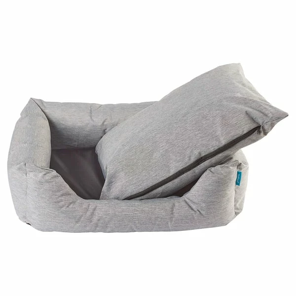 Das In- & Outdoor Haustierbett Sam von ZooRoyal besteht aus robustem, kratzfesten Oxford-Material und einer wasserabweisenden Beschichtung. Somit eignet sich das Haustirbett ideal fĂĽr drinnen, als auch fĂĽr drauĂźen.