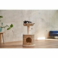 Der ZooRoyal Kratzbaum Dora ist ein schöner, stabiler Kratzbaum im natürlichen Look, der deinen Haustiger mit vielfältigen Möglichkeiten zum Klettern, Spielen, Beobachten und Schlafen begeistern wird. Der cremefarbene Kratzstamm aus Sisal lädt zum Krallenwetzen ein. Danach kann deine Katze mit dem Spielzeug Ball am Seil spielen und sich anschließend zum Ausruhen in die Höhle oder in das gemütliche Liegenest zurückziehen. Die Höhle, sowie das Liegenest, haben ein herausnehmbares Kissen, welches bei 30 Grad in der Maschine gewaschen werden kann.