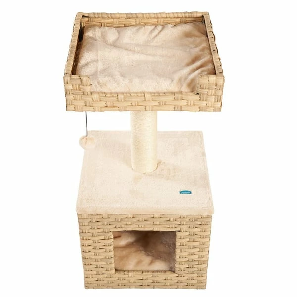 Der ZooRoyal Kratzbaum Gili ist ein schöner, stabiler Kratzbaum im natürlichen Look, der deinen Haustiger mit vielfältigen Möglichkeiten zum Klettern, Spielen, Beobachten und Schlafen begeistern wird. Der cremefarbene Kratzstamm aus Sisal lädt zum Krallenwetzen ein. Danach kann deine Katze mit dem Spielzeug Ball am Seil spielen und sich anschließend zum Ausruhen in die Höhle oder auf die gemütliche Aussichtplattform zurückziehen. Die Höhle, sowie das Liegenest, haben ein herausnehmbares Kissen, welches bei 30 Grad in der Maschine gewaschen werden kann.